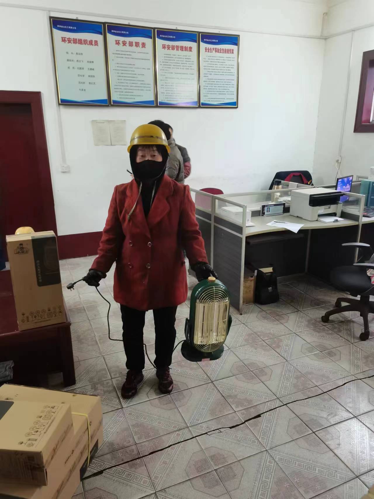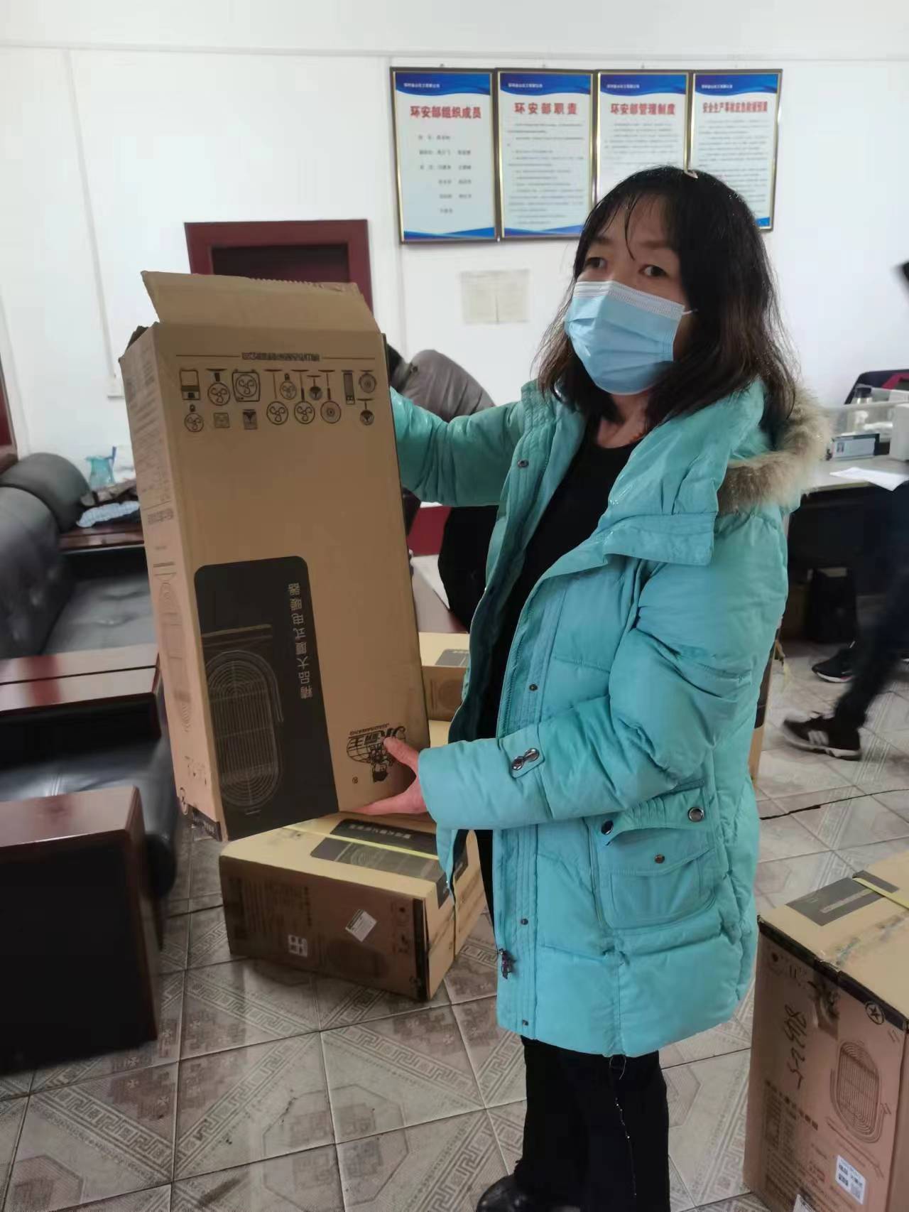 疫情無情人有情,大雪爛漫家溫暖,2022年11月29日在大雪降溫天氣來臨之際,鄭州金山化工有限公司給閉環(huán)管理不能回家的員工配備電暖器。